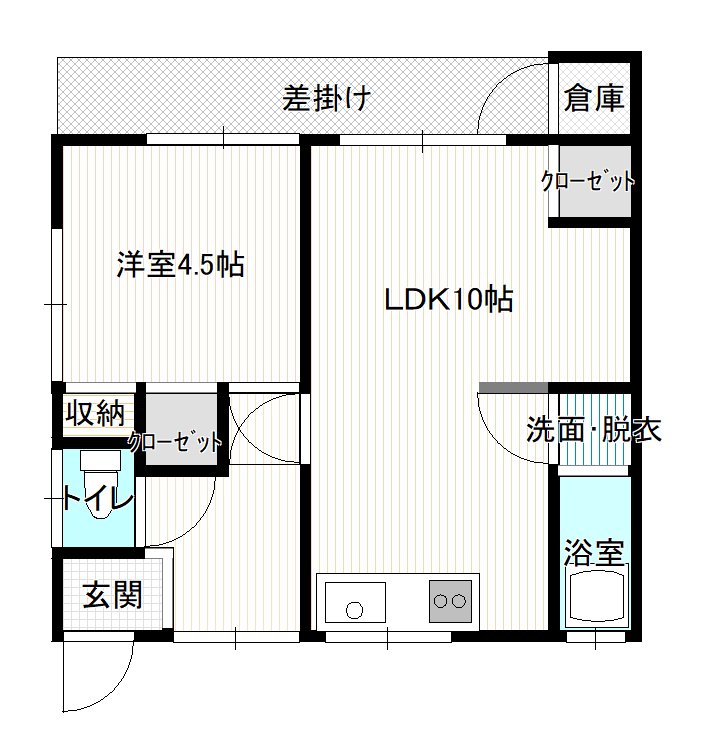 | 間取り | 1LDK(洋4.5、LDK10) |